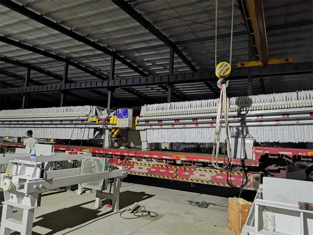 隔膜壓濾機(jī)和常規(guī)箱式壓濾機(jī)的主要區(qū)別在于,在濾板的兩側(cè)都增加了兩個(gè)彈性膜(復(fù)合橡膠膜是一個(gè)整體式膜。在操作期間,當(dāng)進(jìn)料完成時(shí),將高壓流體介質(zhì)注入膜中,并使整個(gè)膜膨脹以過(guò)濾濾餅,以進(jìn)一步使濾餅脫水,這是壓力過(guò)濾。在隔膜壓濾機(jī)運(yùn)行期間,液壓系統(tǒng)使用液壓油作為壓力載體來(lái)傳遞內(nèi)部壓力。